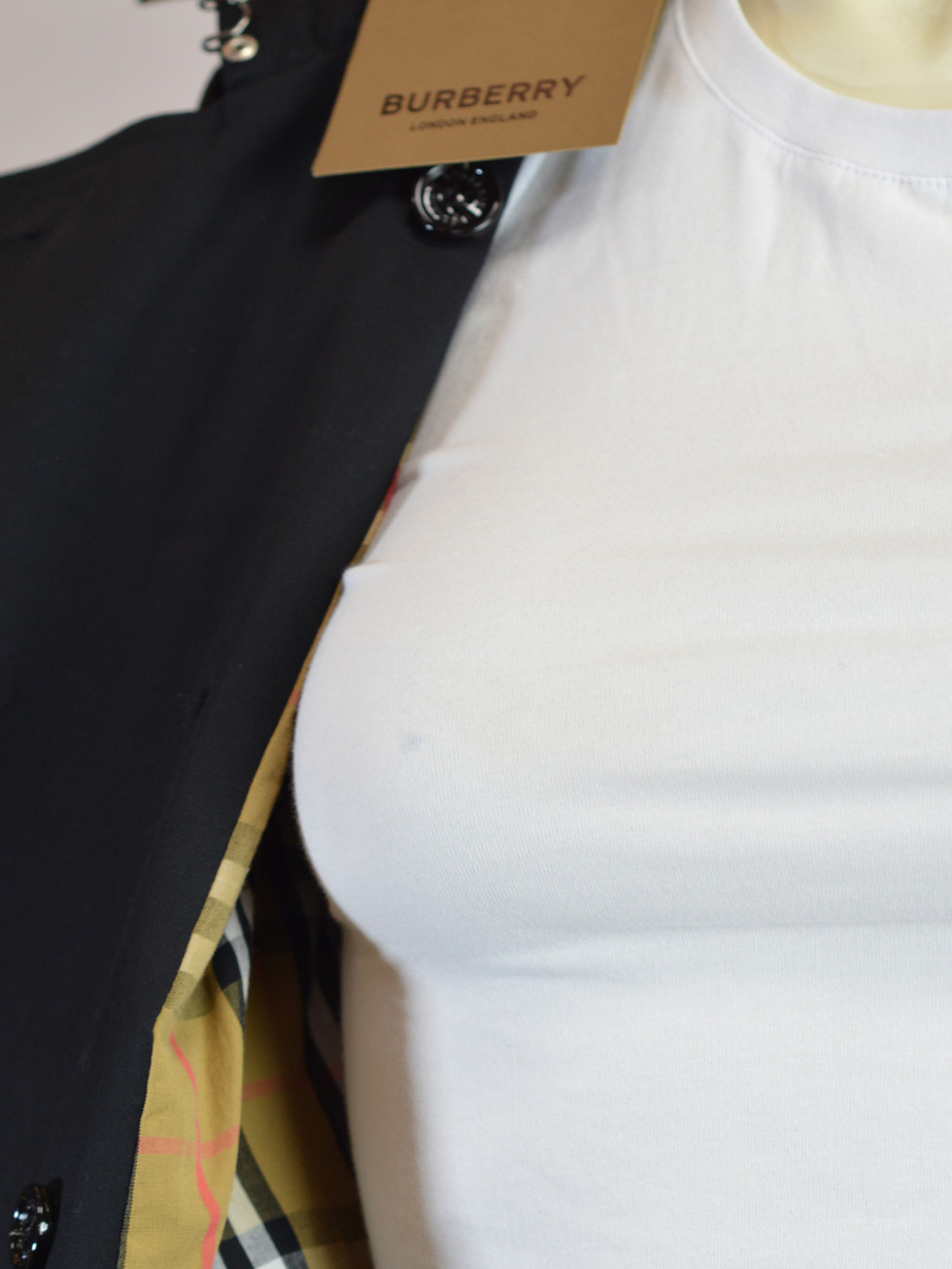 - Iconic Burberry double-breasted trench design